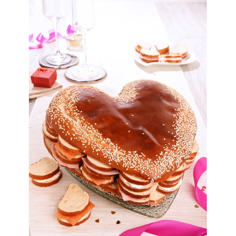 Pour l'apéritif, un délicieux pain surprise en pâte à Bretzel, en forme de feuille, garni généreusement de 60 toasts variés :